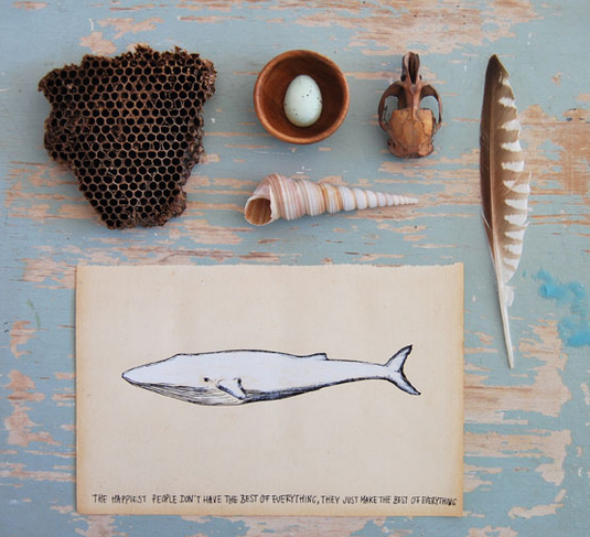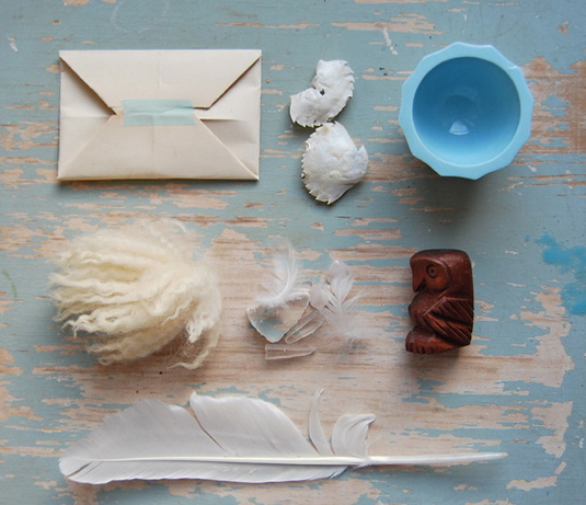 一位來自荷蘭最佳旅游城市格羅寧根的插畫設計師Anja,他的戀物情節完全釋放,她將平時收集的各種小物變身為一套十足反映戀物情節的擺拍,就在一張斑駁老舊的藍漆木桌上,非常整齊的擺弄著生活中很不起眼的一系列物品。九月的綠葉,夏日的貝殼,老照片,牛皮紙舊信封,這些已經失去實用性質的東西卻默默保留著美好的紀念意義,被有心之人如此小心珍藏。